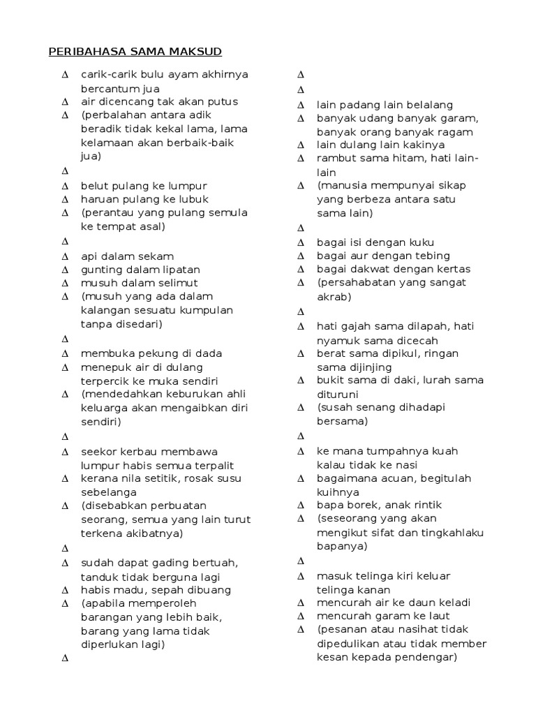Org yang datang kembali ke kampung halamannya. Peribahasa melayu yang paling popular setiap hari. Dari keterangan korban, kdrt itu bermula ketika ambo dalle pulang ke rumahnya dan langsung marah tanpa sebab. Apabila tulang ikan yang tertelan cukup kecil, duri akan luruh terbawa air garam sehingga langsung masuk ke saluran pencernaan. Next postseterusnya bagai haruan di dalam tuar.