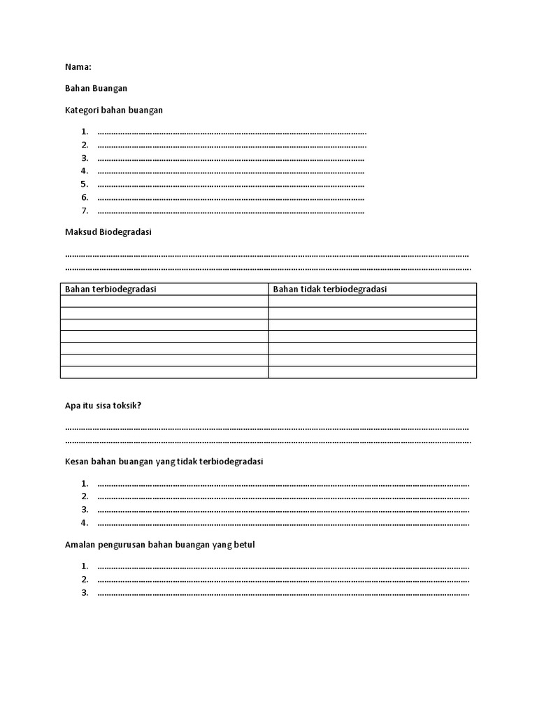 Nota ringkas sains tahun 6. Bahan buangan diproses menjadi produk baru. Bahan buangan ialah bahan yang tidak diperlukan lagi dan tidak mahu disimpan. Text of bahan buangan sains tahun 6. Bahan plastik mengambil masa lebih daripada 200 tahun untuk mereput secara semulajadi. March 28, 2018 1 comments. Bahan buangan hendaklah diasingkan mengikut jenis bahan sebelum dibuang. Gunakan bekas khas untuk membuang bahan buangan kimia dan sisa minyak. Saya juga ada buat sedikit perkongsian video animasi sains tahun 3 dan tahun 6 di channel saya. Start studying istilah sains tahun 6. Beberapa kandungan dalam video ini, mungkin bukan hak milik saya. Pengurusan bahan buangan tahun 6. Slide show topik bahan buangan sains tahun 6.