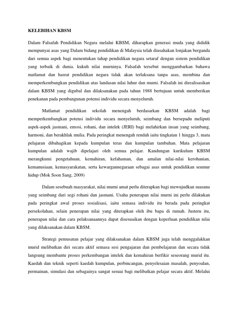 Manakala kssm berasaskan kepada 6 tunjang iaitu komunikasi,perkembangan fizikal dan estetika,kemanusiaan,keterampilan diri, sains teknologi , engineering dan matematik (stem), serta kerohanian ,sikap dan nilai. Kerangka kurikulum kbsm berdasarkan 3 bidang iaitu komunikasi,manusia dan alam sekeliling dan pembangunan diri individu. Ternyata perbezaan antara azlina dengan firdaus semenjak meninggalkan rumah tadi, bagaikan langit dengan. Mar 11, 2018 · kupasan novel dan antologi, kbsm, kssm, sekolah menengah.
